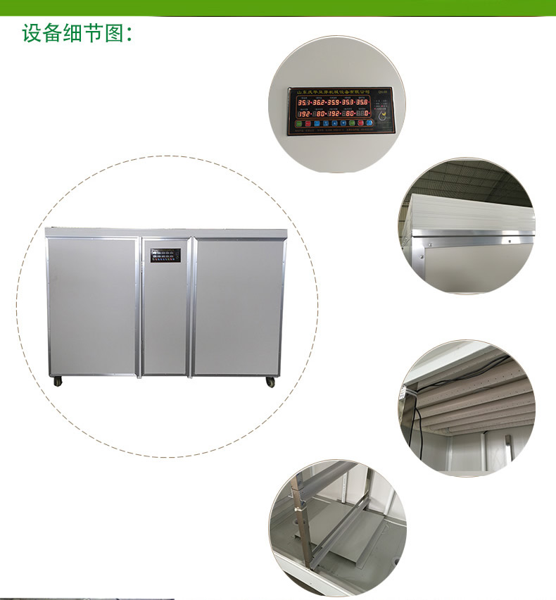 產(chǎn)品型號:YJ-800A (該機(jī)器有 一機(jī)單控和一機(jī)雙控 兩個型號) 電源電壓(V):220 總功率(KW):2.0 總?cè)萘?KG):1600 日產(chǎn)量(KG):400 育芽箱:48個(里外雙排,如下圖) 整機(jī)重量(KG):500 2、主要用途: 廣泛適用于中型戶
